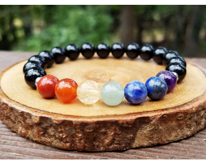 Black Tourmaline Chakra Elastic Beaded Bracelet by Rock My Zen